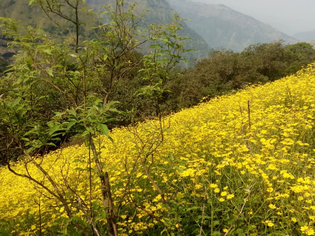 Common name is Sonki in Marathi, or Graham’s groundsel. It is a gregarious plant of the western ghats and is seen all over the countryside during the months of August to October. It is an annual herb growing between 30 to 100 cm in height. Some hill slopes of Matheran look very beautiful. The picture below was taken on the path to Panorama point, before it was paver blocked and lined with an ugly railing.