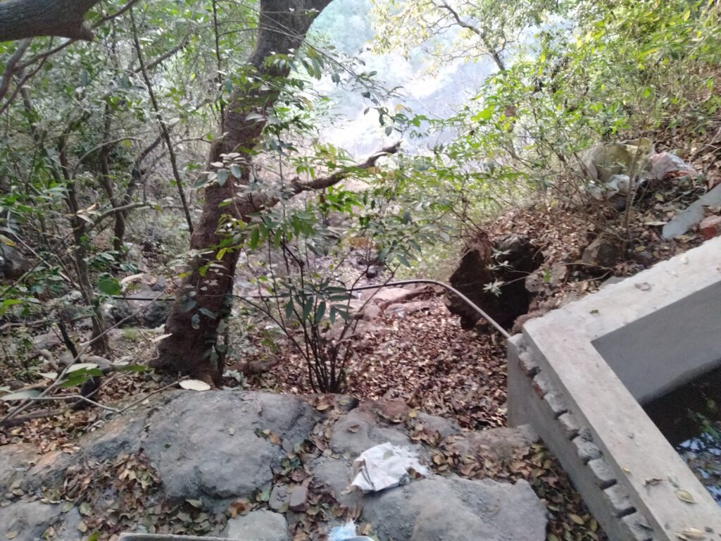 Ponsonby spring is portable, drinkable and has a steady flow even in the summer months. It is located on the western edge of the plateau a short distance to the south of Nala spring. It is in deep jungle situated near the Old Gymkhana compound which is now used as a dumping ground for solid waste. Thus there is a good chance that the water will be getting contaminated. As one can see in the photos attached, someone has built a cement open tank to lift water from here and transport it via means of a pipe for use.