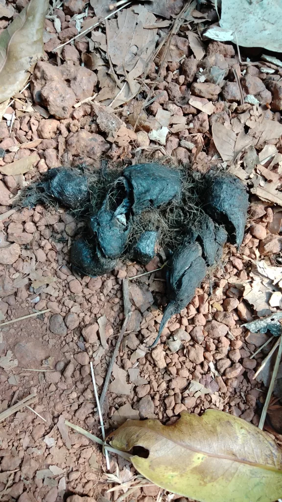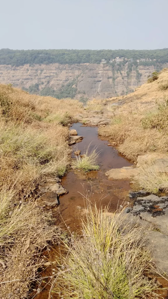 Translate to Marathi and it will read Red spring. I wonder why, could be because of the red mud around. It is not easy to reach this spring, one of the visitors here very likely to be a leopard. On more than one occasion I have found leopard droppings in the vicinity of this spring. In the monsoon it is a roaring waterfall. An ideal place to be early morning or late evening, looking at the sun going behind the Matheran range and the Matheran town in the distance. To reach here one has to move off the main path that leads to Garbut point.