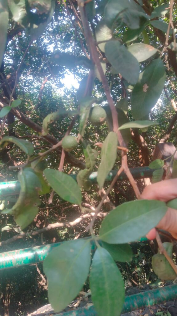 Common name is Bombay Atalantia, makad limbu in Marathi. It is a small evergreen tree with sharp spines. Leaves are elliptic, 5-10 cm long and rounded at the tip. White flowers arise in racemes in leaf axis. Flowers are 1 cm across, faintly fragrant, with 4 sepals. Fruit is round like a limbu, 2 cm across and dark green. Flowering is in November, spotted the fruit on path to Panorama point in first week of March.