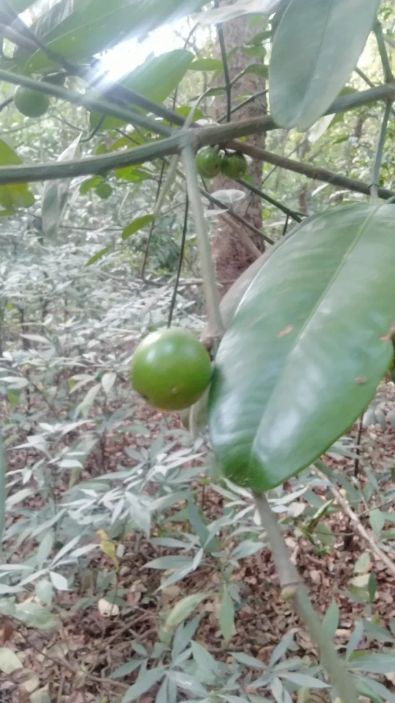 Common name is Phansada/Lamboti. It grows up to 20 m tall. Flowers profusely in the month of Feb-March. The flowers are tiny and one can hear the flowers falling like rain drops. It’s round, globular fruits are seen in May, green in colour and becomes yellow thereafter. Produces edible fruits with a flavor similar to durian, sometimes called garlic fruit or bitter garcinia. The fruit should be picked after falling off the tree for maximum ripeness. Picked too early, it may smell too strong and taste too much like garlic. The flavor is described as having a mild garlic taste but is also sweet. The plant is harvested from the wild for local use as food, and traditional medicine for treating gastrointestinal issues, inflammations and infections. The fruit is sweet with an acidic flavor and a bitter aftertaste.