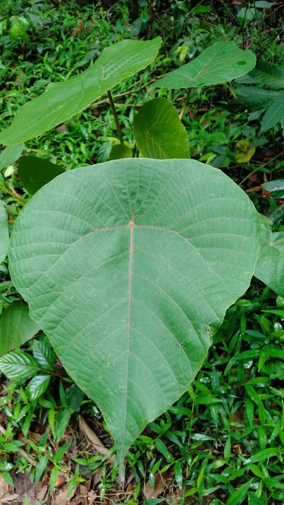 Marathi name is Chanda, common name is Shield-leaf tree. What is unique of this tree is that the leaves are what is called peltate. The leaf is like an umbrella, where the stalk is attached not to the end of the leaf, but to the center of the lower surface of the leaf. It is a medium sized tree growing up to 10 m tall. Flowers occur in long panicles (a loose branching cluster of flowers). It flowers in January to February.