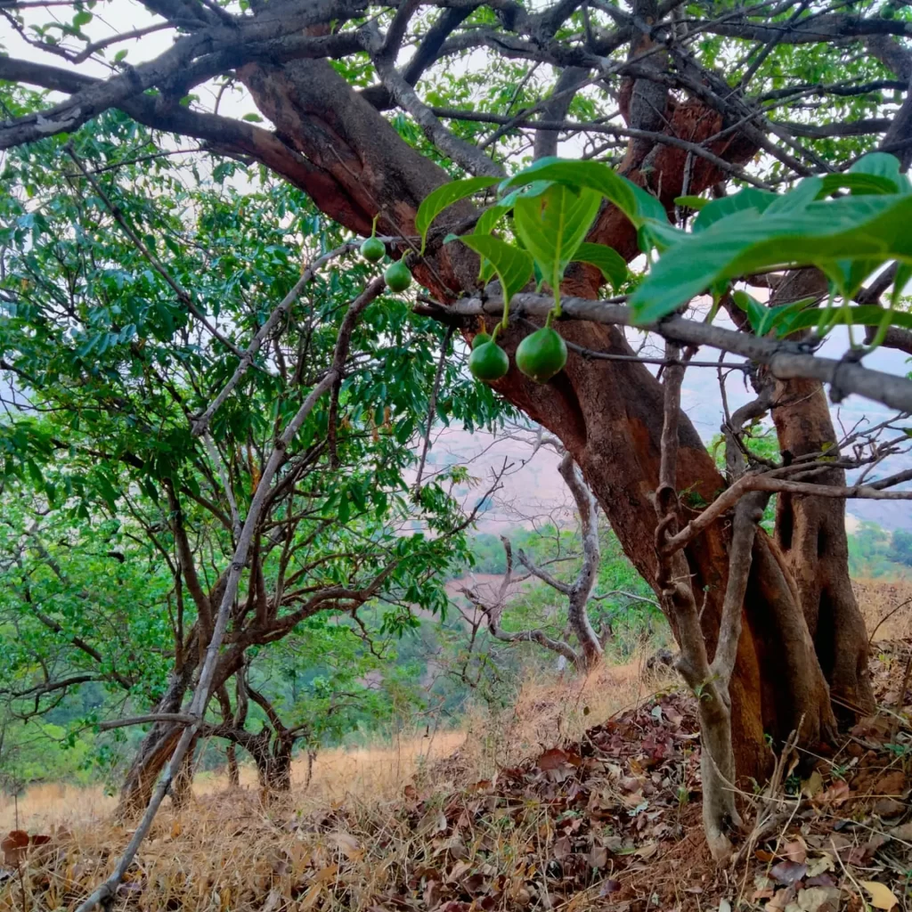 Common name is Alu or Aaliv in some regions. It is also known as Meyna laxiflora. It is a small medium sized tree with medicinal value. Research suggests that it may have anti-diabetic, antioxidant, anti bacterial, and anti fungal activities. It has spines on it’s branches, flowers in mach-april and are small greenish white. Fruits in the monsoon, when ripe become brown like a chickoo, it is edible and can be consumed raw or dried.
